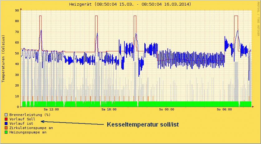 eigentlich nicht der Vorlauf Soll/Ist, sondern die Kesseltemperatur. In