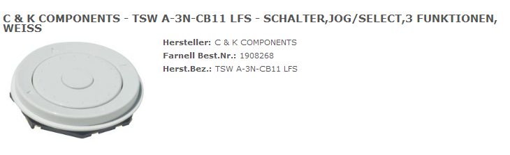 Daß es Drehencoder sind, dürfte bekannt sein, aber hier wird dediziert nach einem Teil gesucht, das eben so eine "drehrad"-artige, also scheibenförmige Form hat. Die normalen Encoder haben mehr oder weniger die Form von Potis, also Gehäuse und dann ne 6er Achse herauslugen, wo man einen Knopf (Dreh.. !) draufschrauben kann. Mich würde das auch mal interessieren, ob es irgendwo richtig kleine scheibenförmige Encoder gibt. W.S.