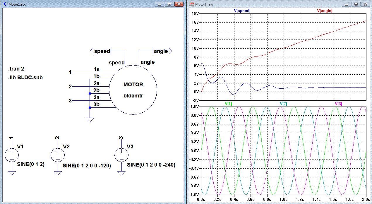 Hallo Martin, Lösche bitte deine BLDC.asy und deine BLDC.sub falls du die in irgend ein Verzeichnis der LTspice Installation kopiert hast. Nimm meine Dateien. Dazu einfach den zip-file in einem Verzeichnis entpacken. Kopiere mein .sub und .asy in jedes Schaltplanverzeichnis in dem du diesen Motor verwenden willst. Gruß Helmut