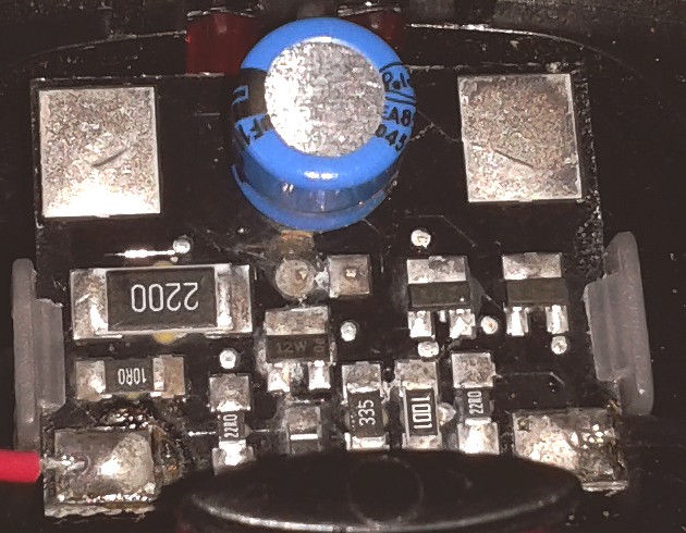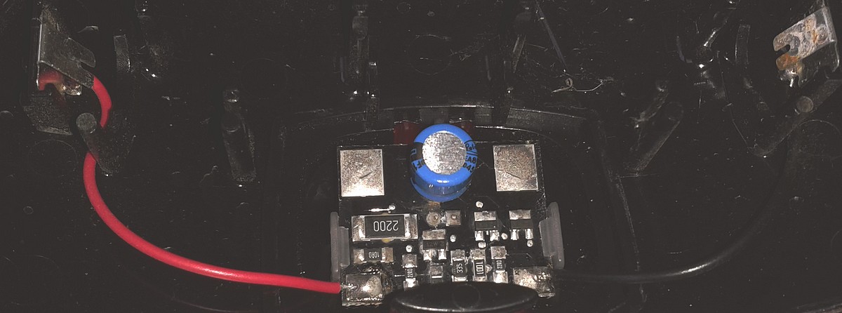 Im Anhang sind zwei Bilder eines Fahrradrücklichts, das 2 Batterien Typ AA enthält. Was natürlich großer Mist ist, da ich bis zum Ausfall der Standlichtfunktion davon nichts wusste. Jetzt muss ich mir ein passendes Rücklicht mit einem Gold-Cap Kondensator besorgen. Aber dies nur am Rande. Oben (siehe Fahr1.jpg) kommen die beiden Batterien in Reihe. Die beiden großen Pads werden vom Dynamo versorgt. Was mich aber wundert, dass diese Schaltung über 2 1/2 funktioniert hat. Weiß jemand wie die Elektronik arbeitet oder wo ich einen Schaltplan bekommen kann? Der Hersteller ist Basta. Die Bauteile im SOT-Gehäuse (siehe Fahr02.jpg, je 2 x) haben die Aufschrift 12 W bzw. KJE.