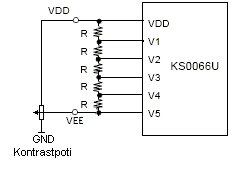 Hi >Na das übliche Kontrastpoti zwischen Vcc und GND mit Schleifer am Vee- >Eingang des Displays. Und wenn er den Schleifer ganz auf die Vcc-Seite >dreht, dann schließt er seine Betriebsspannung kurz und es geht "das >Licht aus". Das Ganze sieht auf dem Display/im Displaycontroller so wie im Anhang aus. Bei Poti an VDD wird dem eigentlichem Display die Spannung weggenommem. Ein Kurzer entsteht nicht. MfG Spess
