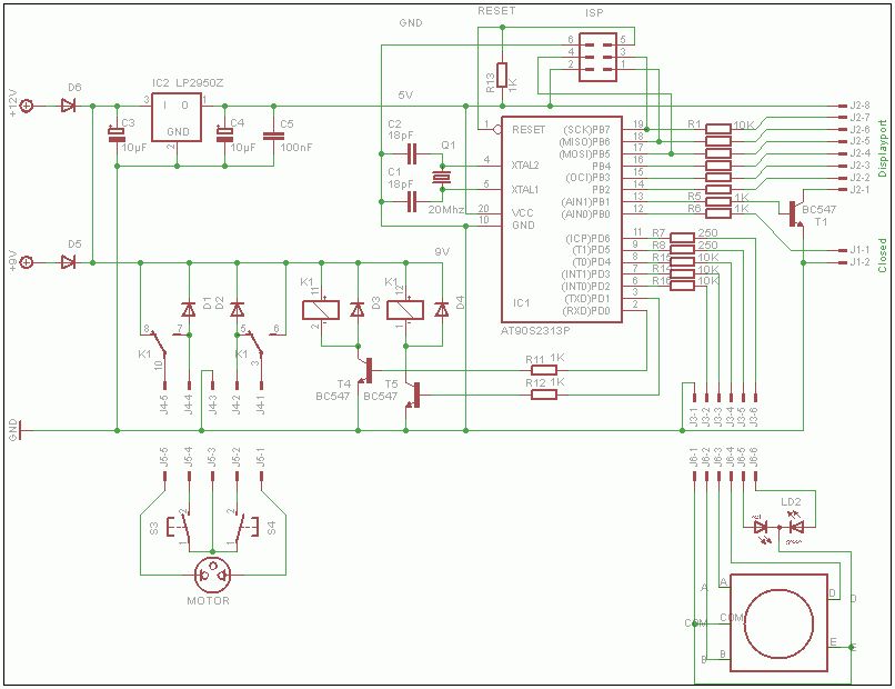Erst schon mal vielen Dank für die ganzen Antworten in der kurzen Zeit. :-) Ich habe meinen ersten Schaltungsdraft mal angefügt, wobei sich folgendes noch ändern wird: - µC wird ein ATmega328P (oder - softwareabhängig - auch mit weniger Flash) - der Quarz wird gegen einen 32kHz getauscht (zwecks RTC und PowerDown) - das bistabile Relais wird direkt an den Pins betrieben (< 35mA) - Display werde ich vermutlich ebenso direkt via Pin bestromen - im Schaltplan ist momentan keine Endposition erreicht (sonst wäre S3 oder S4 betätigt) So ... jetzt mal der Reihe nach zu den Fragen ... @Dirk: Brownout setze ich auf 4,7V. Ich gehe davon aus, dass ein 9V-Block dann immer noch das Minimum an Saft hat, um den Servo zumindest ein paar Milimeter weit zu bewegen - das würde bereits genügen. Notfalls ginge aber auch eine Reservebatterie (würde ich dann noch testen). @6A66: Nicht ganz. Ich habe eine Steuerung (µC). Sobald diese nichts mehr tut, soll ein anderer Schaltungsteil für einen definierten Motorzustand sorgen. Das ein 9V-Block nicht ideal zum Betreiben von Motoren ist, ist mir bewusst. Der Motor wird voraussichtlich nur ein- oder zweimal die Woche laufen - von daher ist eine hohe Batterieleistung nebensächlich. Schaltplan hängt an, vom Sicherheitskreis ist da aber noch nichts drin. Und sobald ich rausfinde, was Du mit "PL" meinst, kann ich Dir ggf. darauf anworten. ;) @Amateur: Genau das - tritt ein Fehlzustand (Reset durch Watchdog oder Brownout oder auch plötzliche Vaporisierung des µCs) auf, dann möchte ich - soweit irgend möglich - genau diesen definierten Zustand. Der µC wird - im Falle eines Neustarts - ebenso den definierten Zustand ansteuern und bis auf weiteres dort verweilen (um Softwarefehler und/oder Reset durch Watchdog abzudecken). Allerdings ... wie kann ich den erreichen, wenn alle Pins dann hochohmig sind? ;) @IOwside: Siehe weiter oben. Ich schau mir das noch an, wie ein fast auf 4V leergelutschter 9V-Block reagiert und ob ich ggf. eine Alternativbatterie verwende. und nochmal @Amateur: Ich möcht' jedoch ein kleines Notfall-Backup für den µC. Sicherlich werde ich auch dem µC noch eine Batterie-Leer-Erkennung spendieren und dann alles nötige bis zur neuen Batterie einleiten. ;)