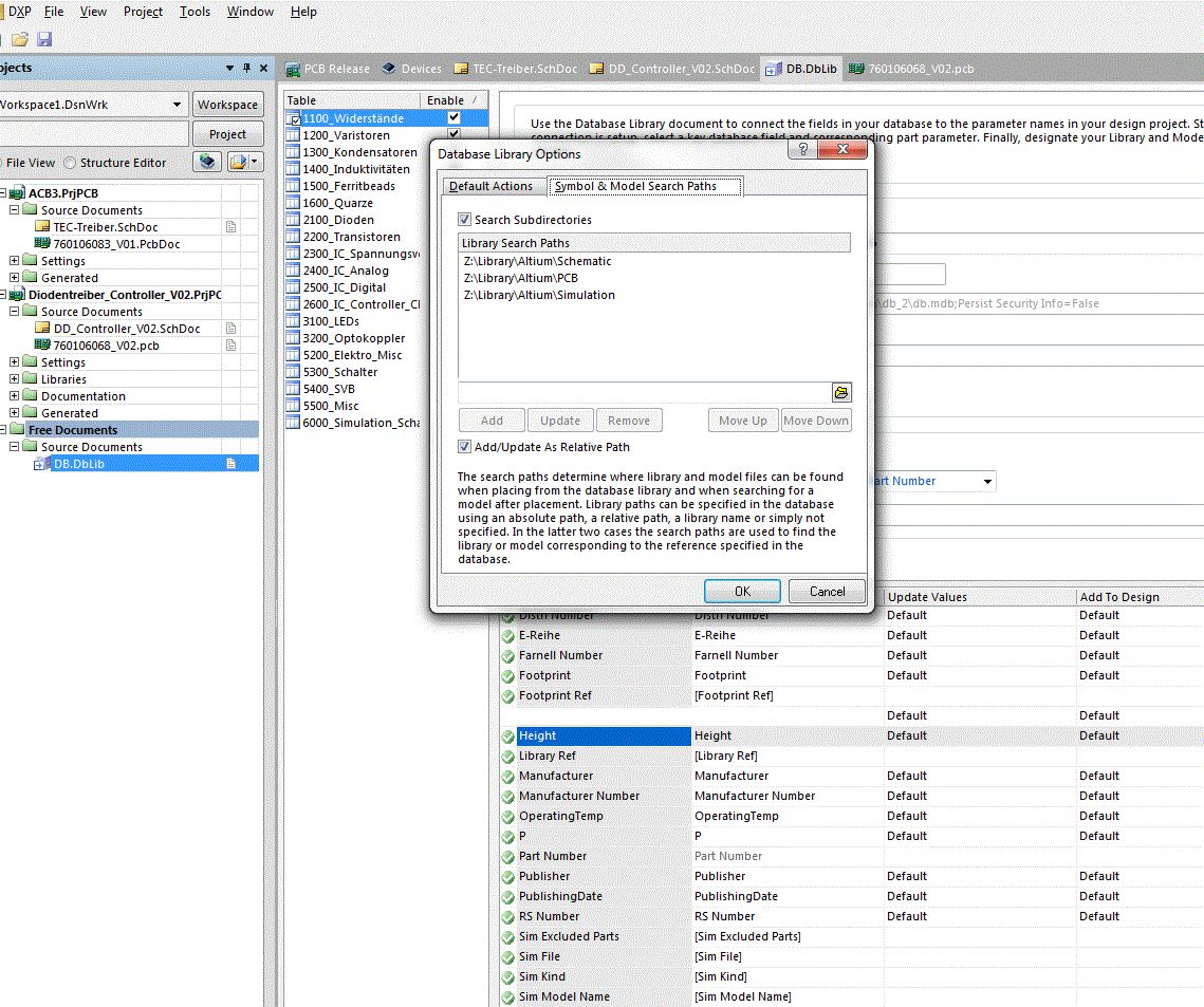 Taz schrieb: > Library Path - Pfad und Dateiname der SchLib aus der das Symbol kommen Das kann man aber auch direkt einstellen, wenn man die .dblib Datei erstellt. Da kann man mittels Rechtsklick auf Optionen (wenn man sich im Vorschaufenster der Datenbank befindet, im oberen Bereich) dann einstellen, welche Pfade durchsucht werden sollen. (siehe Screenshot)