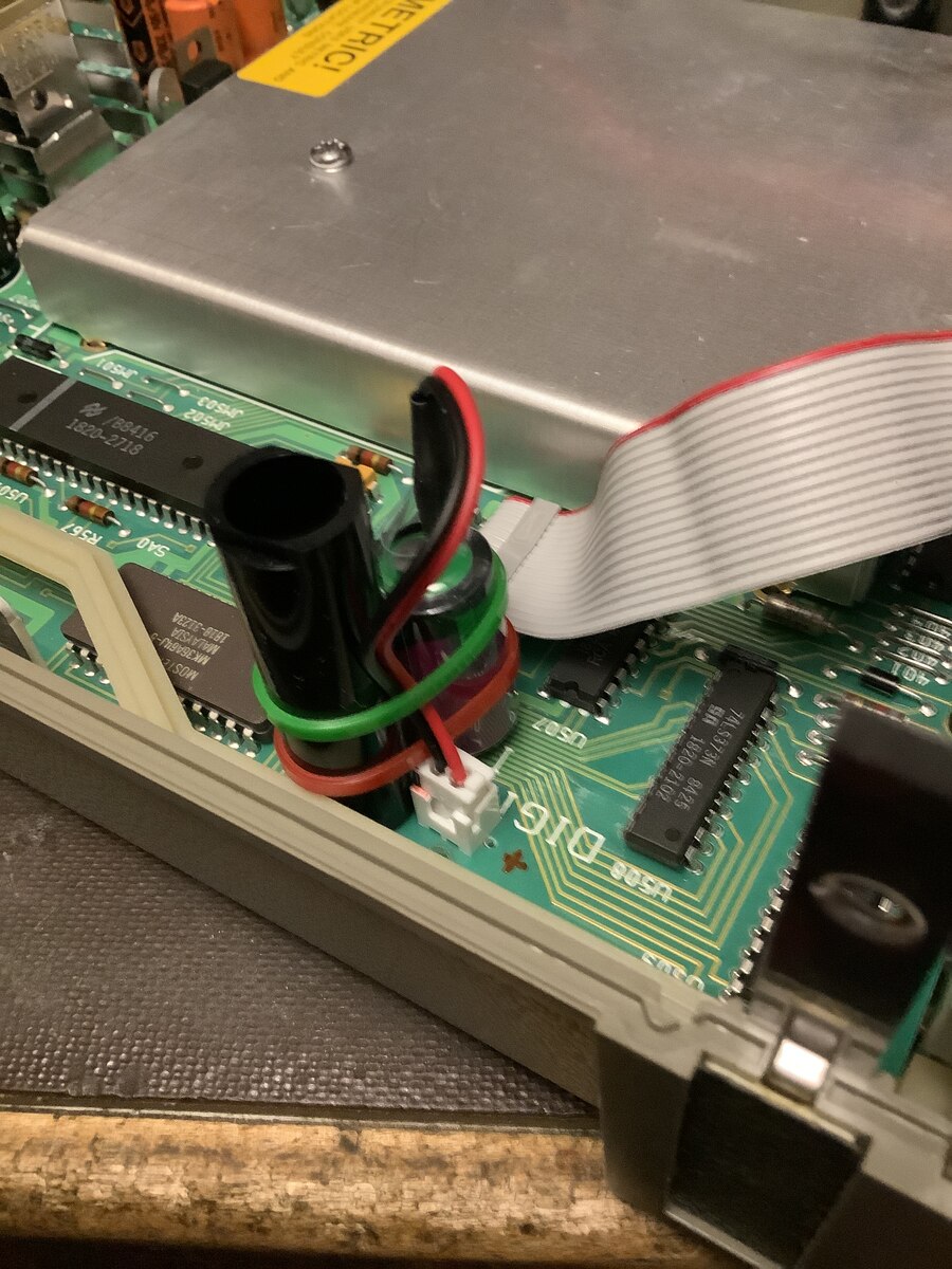 Martin S. schrieb: > Möge Deine Gummiwahl gut gewesen sein. Die üblichen Haushaltsgummis > werden bei zu starker Spannung sehr schnell brüchig. Nun ja, wenn er reißt, dann weiß ich zumindest sofort, wo ich für eine Reparatur schauen muss. Vielleicht findet sich ja (nicht ganz so „quick“:) dann ein passenderer Gummi. Das Umständlichste ist es dabei eigentlich, das Laufwerk heraus zu bekommen, da es durch die Frontblende der Schublade im vorderen Gehäuserahmen festgeklemmt ist. Man muss also erstmal das Laufwerk mitsamt Gehäuserahmen demontieren, dann von unten an einem Zahnrad drehen, damit sich die Schublade öffnet, erst dann kann man diese Frontblende demontieren und hat das Laufwerk einzeln in der Hand.