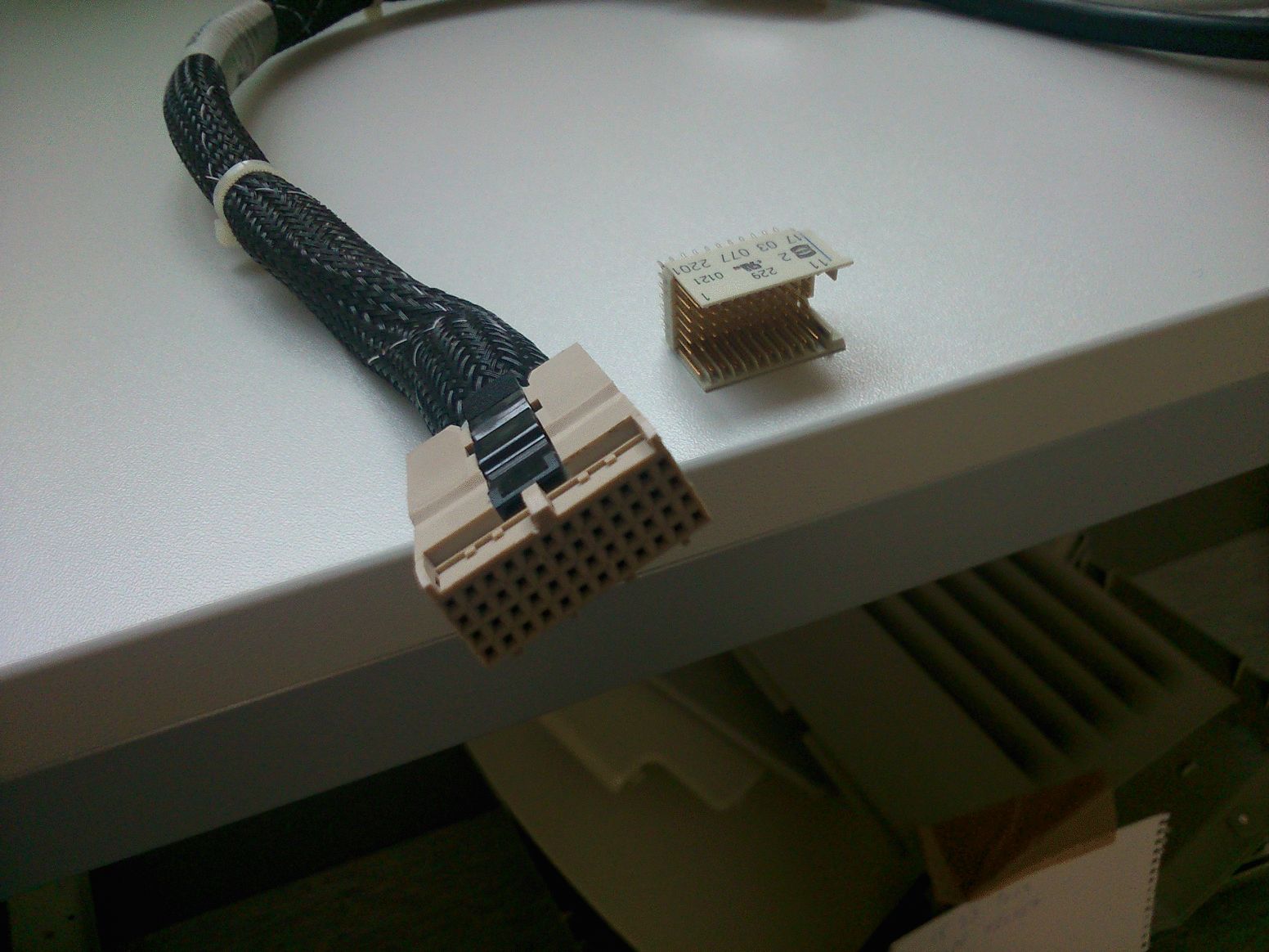 Hey, Leute bin auf der suche nach dieser Steckverbindung/Kabel siehe Foto. Rechts daneben liegt eine HM Federleiste von Harting 96polig so sollte die Steckverbindung aussehen wird aber noch von anderen Herstellern angeboten. Das Kabel daneben würde fasst passen aber hat zuwenig pins und falsche einkerbung. Leider steht am Stecker nichts drauf weder Nummer oder Hersteller oder irgendein Symbol...... vielleicht wenn ich den Hersteller dieses Kabels kenne, kann ich so eines irgendwo bestellen aber ich habe keine Ahnung wo. vielleicht kann jemand helfen und mir einen Lieferanten nenne . Vielen Vielen dank