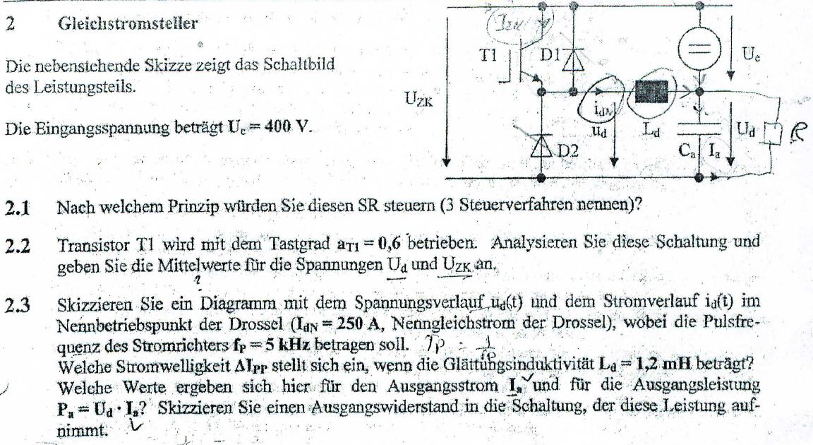 Hallo Forum, ich bin mir nicht ganz sicher ob ich hier richtig bin aber mir wurde hier schon mal gut geholfen, also versuche ich es einfach nochmal :). Und zwar fehlt mir der Ansatz zu Aufgabe 2.2 (s.A.) Fehlen mir zur Berechnung von Uzk und Ud nicht noch weitere Angaben? Steh auf dem Schlauch....Danke im Vorraus!!! Gruß aus Aachen