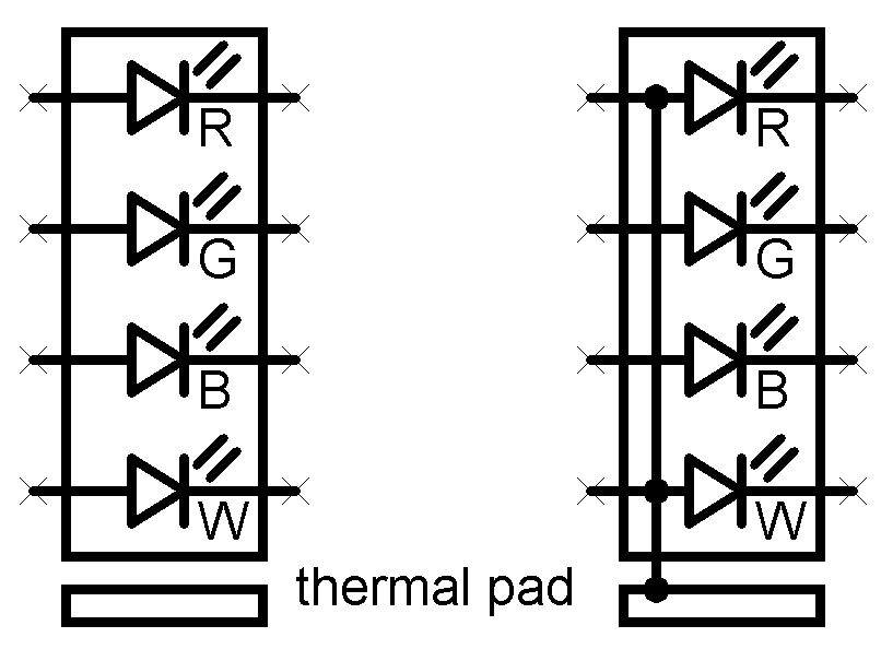 Moin, Gerade habe ich eine unangenehme Erfahrung mit 4 * 1W RGBW LEDs gemacht. Die erste Lieferung aus China war wunderbar. Anoden und Kathoden der 4 LEDs einzeln herausgeführt - Thermal Pad isoliert. Je 3 Stück in Reihe an einem entsprechenden 12V Controller - eine helle Freude. Dann nochmal welche im günstigen 20er Pack geordert (anderer Verkäufer). Im ebay Angebot ein Foto mit den schon vorher erworbenen. Geliefert wurden aber welche die etwas anders aussahen. Ich habe mir dabei keine großen Gedanken gemacht, ok, die Chips waren anders angeordnet. Wieder schön in Reihe aufgelötet - keine helle Freude sondern Rauchzeichen. Die Dingen hatten alle einen Schluß zwischen Anode rot und Anode weiss - der Thermal Pad hing auch noch mit dran. Nur zur Warnung wenn vielleicht noch jemand mit dem Gedanken spielt eine RGBW Lampe zu bauen. Gruß Einhart