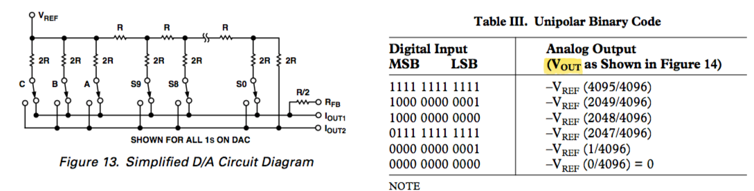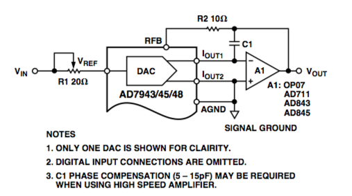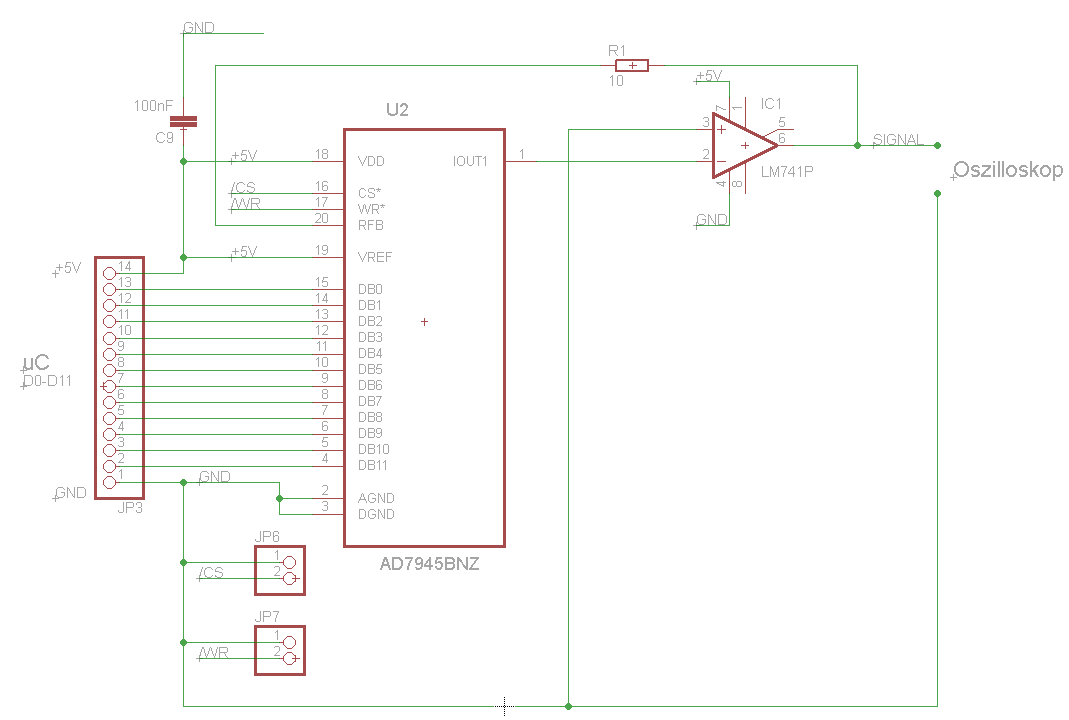 Hallo zusammen, ich habe mir einen AD7948BN besorgt und nach folgender Schaltung (Bild 1) aufgebaut. Diese funktioniert aber gar nicht. Ich mache mit dem uC die Daten D0-D11 nacheinander an. So sollte ja letztendlich eine Spannung von +5V am Signalausgang ankommen, bzw. nicht genau +5V, da der OP aktuell noch nur mit +5V betrieben wird. Als Vorlage diente mir die Schaltung aus dem Datenblatt (Bild 2). Jetzt Frage ich mich wo mein Fehler ist, da ich am Signalausgang irgendeinen Müll erhalte. Im Datenblatt irritiert mich der folgenden Ausschnitt (Bild 3), da hier nur Datenbits von 0-9 und noch mal A-C gezeichnet sind. Sehe ich das aber schon richtig, dass um die volle Spannung zu erhalten ich die Datenbits D0-D11 auf High legen muss? Ich möchte letztendlich über diesen z.B. Sinussignale erzeugen (bis 1kHz) können. Meint ihr die 12Bit sind zu genau? Denke aber dann spare ich mir Aufwand beim Filter. Habt ihr alternativ einen Tipp wie ich das Signal gut erzeugen kann? 10Bit vllt nur? Hatte auch schon überlegt das Signal über einen 12Bit I2C (4725) zu erzeugen, glaube aber dieser ist zu langsam für 1kHZ Signale. Vielen Dank schon mal....