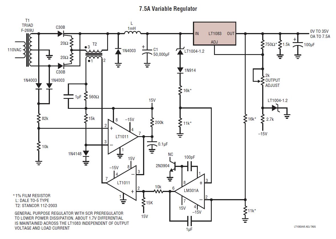 Irgendwo habe ich noch das Schaltbild von meinem Uralt-Heinziger-Netzteil (30V/20A, 10Gang-Potis für CV und CC, 2 grosse analoge Spiegelinstrumente (Bereich umschaltbar, herrlich), das arbeitet nach dem Prinzip. Bringt auch bei 1V die 20A, ohne gross zu heizen. Ich habe mal ein paar EMV-Messungen gemacht - das käme heute nicht mehr durch :-) Aber auf Ausgangsseite ist es einfach Klasse, benutze es nach wie täglich. Versorgt kleine Schaltungen genauso zuverlässig, wie es dicke LiFePo-Akkus schnelllädt. Und kommt auch mit schnellen Laständerungen problemlos klar. Die Thyristorsteuerung alleine ist allerdings ne ganze Eurokarte voller Analogtechnik, samt eigenem Netztrafo, etlichen OPs und 2 Impulsübertragern. Optimal wäre heutzutage wohl ein primärgeregeltes Schaltnetzteil mit Vout=Vsoll+ xV, Linearregler hintendran.