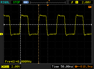 Hallo, ich habe seit kurzem ein STK500. Zuerst habe ich den ATmega8515L gegen einen ATmega168P (grüner Sockel) getauscht. Jumper habe ich wie folgt gesteckt: VTARGET: gesteckt AREF: gesteckt RESET: gesteckt XTAL1: gesteckt OSCSEL: auf 2/3 gesteckt BSEL2: nicht gesteckt PJUMP: nicht gesteckt Im CRYSTAL Sockel steckt ein 8MHz Quarz. Wenn ich jetzt mit Atmel Studio 6.1 programmieren möchte, muss ich doch die ISP Frequenz auf 1/4 der vom Quarz stellen, also max. 2Mhz. Ich habe versucht mit 1Mhz zu programmieren, aber dort bekomme ich einen Fehler und die Device Signature wird Rot hinterlegt. Erst wenn ich noch weiter runter gehe (auf 64kHz) funktioniert es. Die Clock Fuses habe ich auf EXTOSC_8MHZ gesetzt, da nur an den XTAL1 Pin des AVR der Takt kommt. Im Anhang habe ich ein Bild vom Takt an XTAL1 des ATmega168P. Ich hoffe ihr könnt mir helfen. Gruß Felix