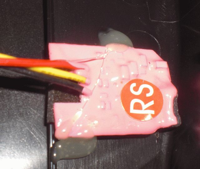 Das dürfte der Empfänger für die Herzrate/Pulsfrequenz sein. Bei umgeschnalltem Brustgurt müssten am gelben Kabel Pulse zu messen sein.