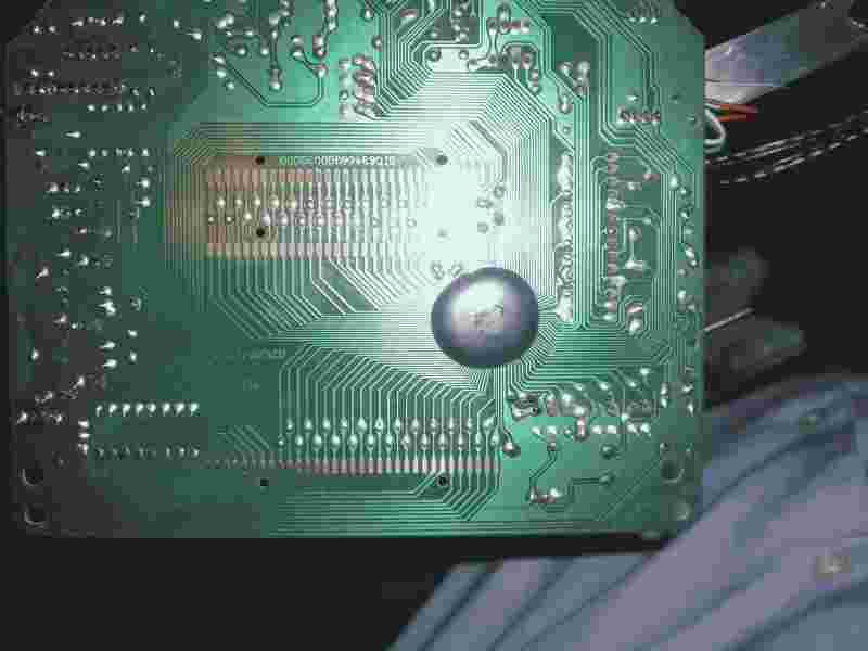 Für die Nachwelt: ich hab mal ein bischen weiter geforscht. 10-adriges Kabel: 2 Leitungen (blau, grün) zum Reed-Schalter an der Schwungscheibe 2 Leitungen (braun, schwarz) zum Motor 3 Leitungen (gelb, orange, rot) zu einem Poti am Getriebe des Motors 3 Leitungen (+grau, -lila, --weiß) Zur Strombuchse Die Holhlbuchse war ausgebrochen und ist mittlerweile gewechselt. Ich hab im ersten Moment angenommen daß der Schalter nicht sauber schaltet (das war aber nicht di Ursache, er schaltet wohl nur die Masse von der Batterie-Einspeisung weg, und da keine Batterien drin sind, hat es keine weitere Konsequenz ob er schaltet oder nicht) Der Griffsensor kann anscheinend auch die Pulsfrequenz messen (es ist nicht ausgeschlossen daß es dennoch einen Brustgurt gibt) Die rechte grüne Huckepack-Platine hat anscheinend doch noch eine andere Funktion als displayansteuerung. UAf der Rückseite ist nämlich ein seperater Chip unter einem schwarzen klecks, er steuert vollständig autonom das Display an Ich werd jetzt erst mal ein anderes Netzteil besorgen (bzw. mit Labornetzteil einspeisen) und mal schauen, ob der Brems-Motor generell dreht