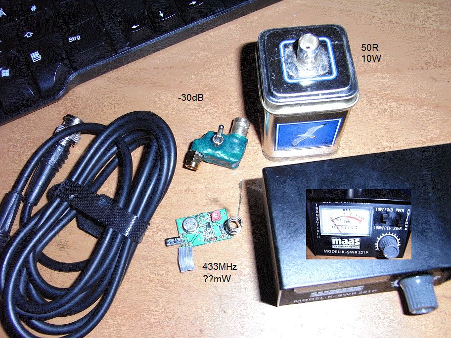 Zunächst möchte ich mich bei allen bedanken, die zum ersten oder mehrmals geantwortet und zum Thema ausführliche Information, Vorschläge, und Tipps beigetragen haben. All das was ich von Ihnen gelernt habe, würde ich sicherlich nicht einfach in Fachbücher so angedeutet und explizit erhellt finden, sondern muss ich selber lang und viel lesen und praktizieren bevor ich alles (und erst nach Monate lang) herauszufinden kann. Ich wünsche jeden all das was er für sich wünscht, z.B. Erfolg,...etc. Geld auch! Jetzt muss ich die vorliegenden vielseitigen Messmöglichkeiten tief ackern und evaluieren damit ich eine zusammenfassende und entscheidende Verständnis aufbauen kann, den jetzt habe ich Anregungen um mehr als ein Breitbändigen Richtkoppler zu bauen. Ein Richtkoppler wurde vor mir vorgeschlagen aus der Notwendigkeit ein Abschwächer (Extraschutz) für mein RF Explorer zu bauen (Bild im Anhang). Damals hatte ich einige Probleme den Abschwächer richtig zu bauen (Drehschalter und SMD Widerstände). Später wollte ich die SWR und die Leistung eines 433MHz Funksenders messen (Bild im Anhang). Jetzt muss ich auch etwas über die 50 Ohm Koaxialkabeln...etc und Anpassungs und Kompensionsthema ...etc. mehr begreifen. Das im Bild SWR messgerät habe ich fom Flohmarkt gekauft und im Internet nach dessen Daten nachgeschlagen. Ich habe herausgefunden das es nur für 27 MHz geeignet ist. Als ich auch dann etwas über (selbst machen, DIY, Homebrew) SWR meter erkündigt war die Idee mit dem Richtkoppler für Wattmeter und SWR meter ein Thema.