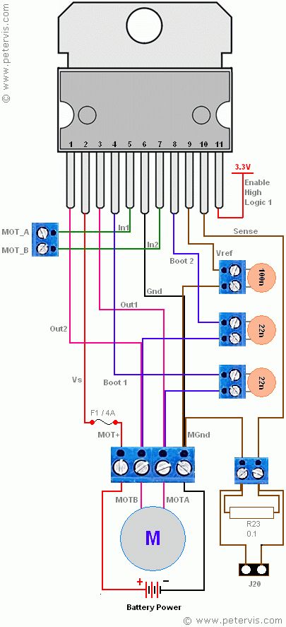 > dicken Elko Dicker Elko verhindert Spannungseinbruch, aber keinen Rauch wenn der Motor das IC überlastet. Hast Du mal den hohen Anlaufstrom des Motors gemessen? Was ist mit den induktiven Abschaltspitzen? Die eingebauten Schutzdioden allein werden nicht schützen, sondern eher schwitzen. DB:http://html.alldatasheet.com/html-pdf/529769/STMICROELECTRONICS/L6203/1942/1/L6203.html