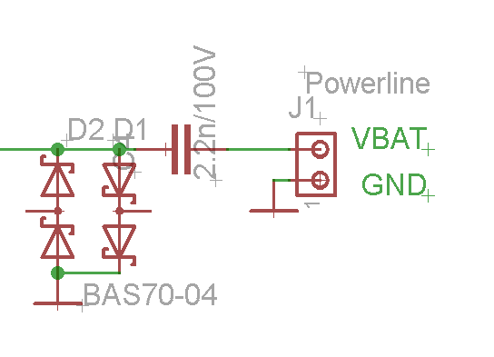Hallo zusammen, Ich haben eine Elektronikschaltung, die auf ein Trägersignal moduliertes Datensignal auslesen soll. Da ich das ganze jedoch noch ein bischen modifiezieren müss, hätte ich gern den Sinn/Nutzen aller verwendeten Schaltungen/Bauteile verstanden: Ein Ausschnitt der Schaltung ist im Anhang: Hier werden 2 BAS70-04 Bauteile verwendet und quasi direkt an das Inputsignal verschalten. Laut Bezeichnung sollten es also Schottky-Dioden sein. Was macht denn diese Art der Verschaltung für einen Sinn? Sie lässt doch an sich immer Strom fliessen!
