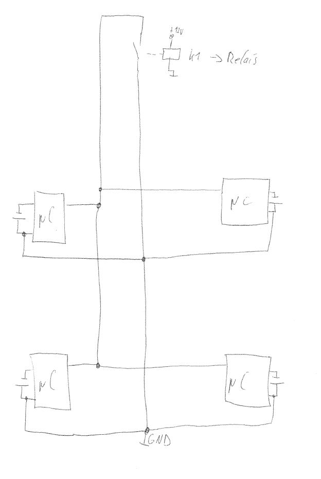 Hallo, ich möchte gerne mehrere AVR Microcontroller, bzw. deren Eingänge zusammenschalten. Würde eine folgende Schaltung so funktionieren? Das Relais zieht quasi alle Eingänge auf Masse (Pullups aktiv), jeder Microcontroller hat jedoch eine eigene Spannungsversorgung. Meine Frage bezieht sich daraufhin, da alle Controller eine untershciedliche Spannungsquelle besitzen. Alternative wäre ein Bus System, aber die Umgebung der Kabel ist absolut nicht störungsfrei, weshalb ich nicht unbedingt gewährleisten kann, dass dort keine Probleme auftreten. Es soll so einfach wie möglich halt sein ;) Beste Grüße und schönen Feierabend bzw. Wochenende