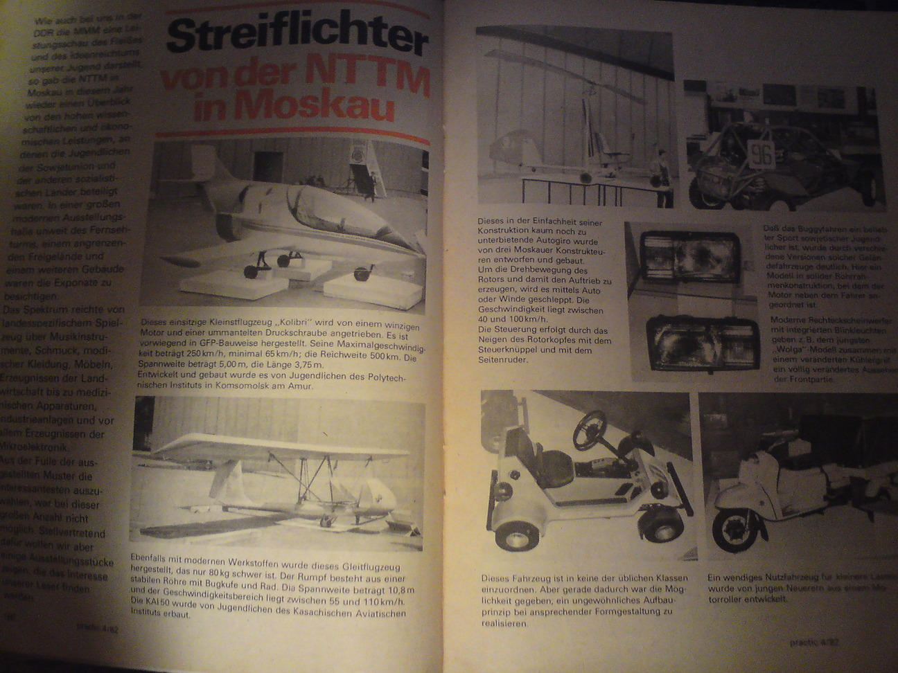 Das hat mich an einen alten Beitrag in der „practic“ erinnert, hab das Heft sogar gefunden. Es war in der Ausgabe 4/1982. Das Fluggerät wird mittels Auto angeschleppt und besitzt keinen eigenen Motor.