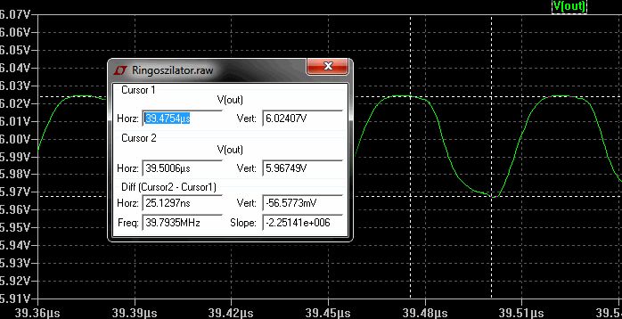 Helmut S. schrieb: > Einfach die Schaltung mal "anschubsen". Dann oszilliert sie. > > .tran 0 100ms 0 startup Zuerst wollte ich schreiben "nö, macht sie nicht", aber dann habe ich mir die Kurve mal genau angeschaut. Der Strich ist etwas breiter als gewohnt :-) und liegt bei ca. 6V, also auf Betriebsspannung. Und wenn man ganz weit reinzoomt, sieht man eine Schwingungsamplitude von ca. 50mV mit ca. 21MHz. Ist diese geringe Amplitude normal?