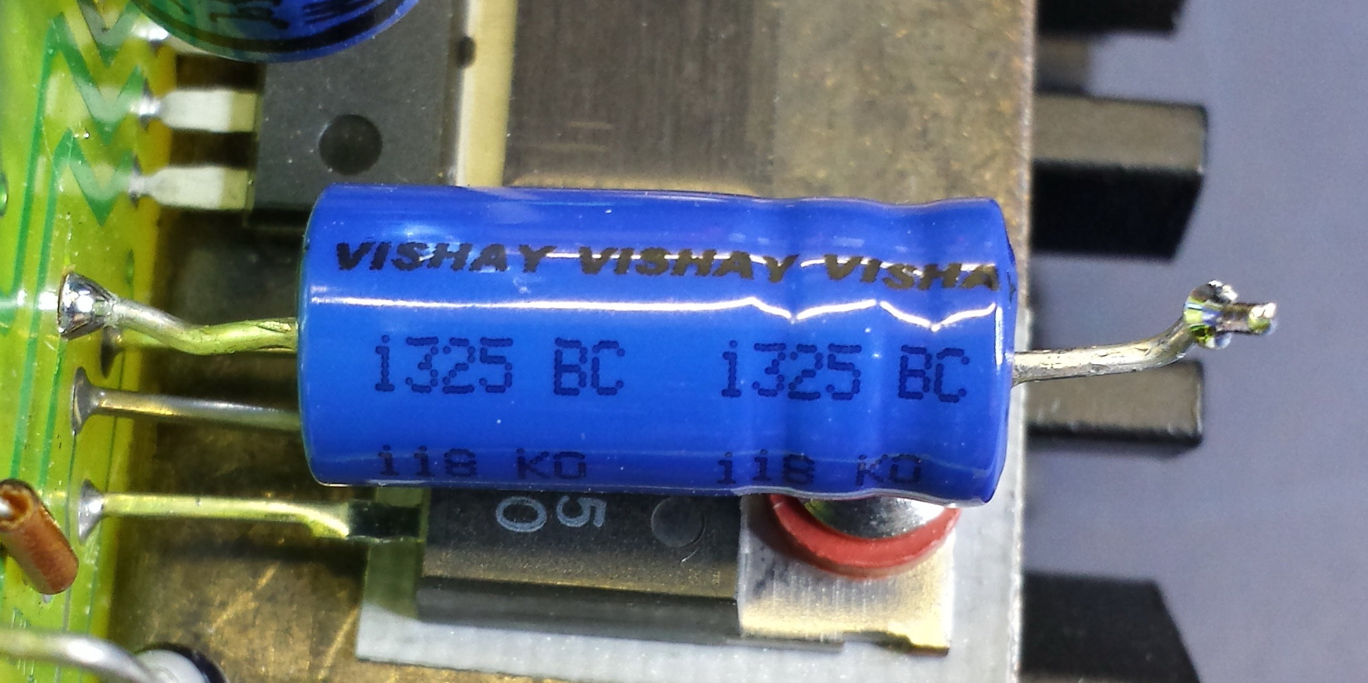 Danke für die Tipps bis dahin. Ich habe mal noch ein bisschen gemessenen. Die Temperatur dürfte das Kriterium sein warum die C#s nach 2-3 Jahren versagen. Die Spannung ist mit Knapp 8 Volt nicht so ausschlaggebend. Ich bin jetzt auf der Suche nach Vishay Kondensatoren (siehe Bild) 100µF 63/40V 85/125°C AXIAL ! Wo kann ich die als Firma beziehen. Bin für jeden Tipp dankbar