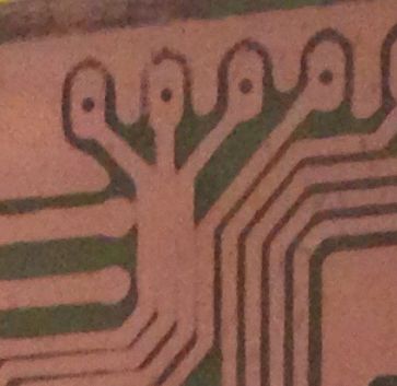 Manche Stellen sehen wirklich so aus, als ob die Vorlage nicht aufliegen würde. (kontinuierliche Leiterbahn Verbreiterung, Linseneffekt) Das linke obere Eck zeig das es da aber noch andere Problem gibt.(beim Entwickeln, Ätzen)