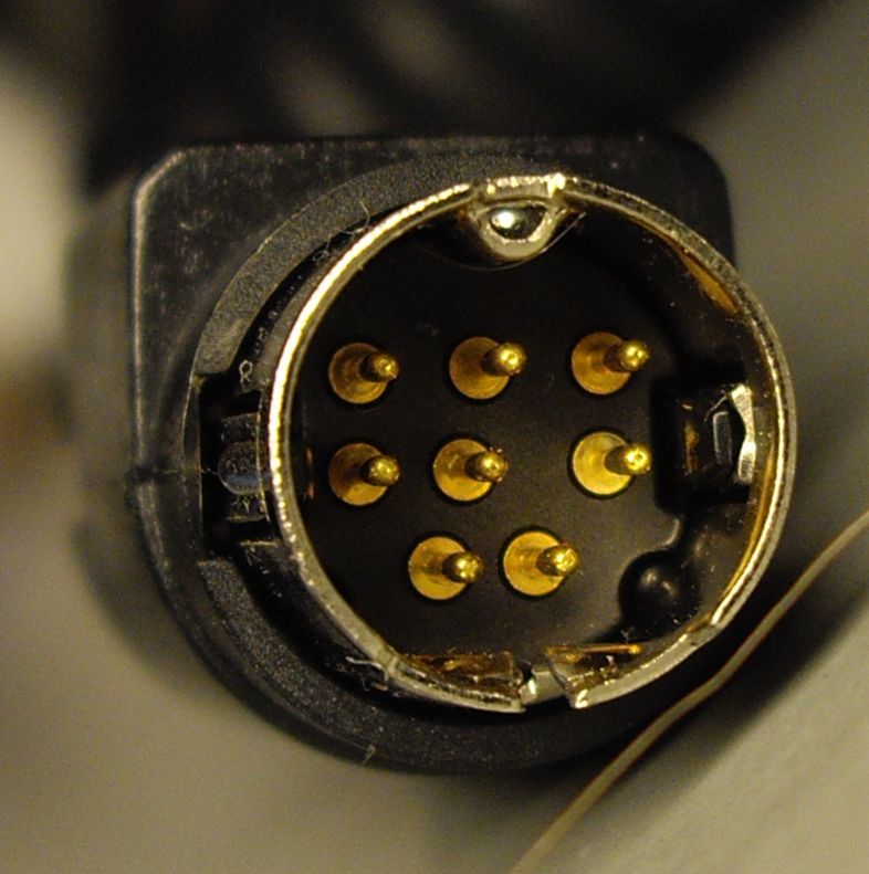 Hallo zusammen, der abgebildete Steckverbinder ist an der Schnittstelle Hörer-Basisgerät des Siemens-C-Netz-Telefons C5 verbaut. Der Stecker sieht fast aus wie Mini-DIN, hat aber einen etwas größeren Durchmesser. (Durchmesser Kragen außen 10 mm, passt definitiv nicht in Mini-DIN 8pol.) Herstellerlogos sind keine vorhanden. In den Stromlaufplänen des Geräts habe ich auch keine Angabe zum Typ oder Hersteller gefunden. Produktionszeitraum waren die 1990er Jahre. Eine Suche anhand des Gerätetyps war bislang erfolglos. Es gibt zwar aus Umbauprojekten eine recht gute Dokumentation des Geräts an sich, die gesuchte Information war bislang aber nicht dabei. Eine parametrische Suche bei den üblichen Distributoren hat bislang auch noch nichts erbracht. Hat jemand noch einen Tipp für mich? Danke und Grüße Stefan