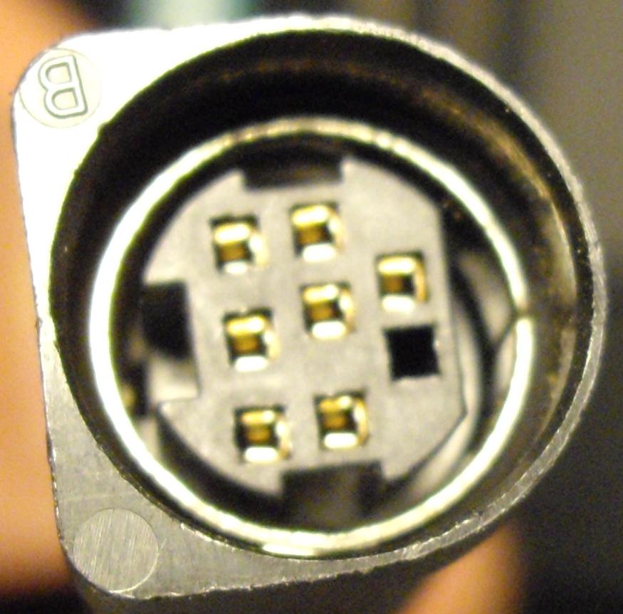 RUT schrieb: > Das ist ein Mini-DIN Stecker Nein, er sieht nur so aus. Mini-DIN hat einen deutlich kleineren Außendurchmesser (müssten etwas mehr als 7 mm sein) am Kragen. Der Metallkragen dieses Steckers passt mit 10 mm Durchmesser definitiv nicht in eine Mini-DIN-Buchse, er liegt vielmehr rundum auf. Grüße Stefan PS: Hab es auch erst für Mini-DIN gehalten. Ist aber von den Maßen her eindeutig was anderes.