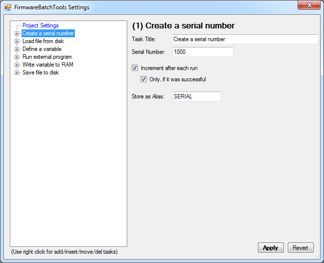 - "Seriennummer erzeugen" ist nur ein "Task" in dem Projekt. Ob du den