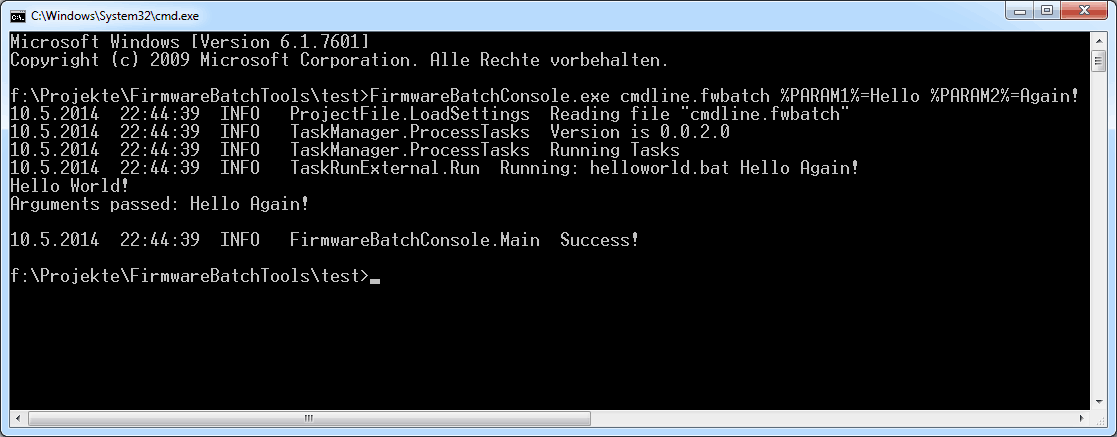 Screenshot. Zur Demo werden die Variablen an helloworld.bat übergeben.