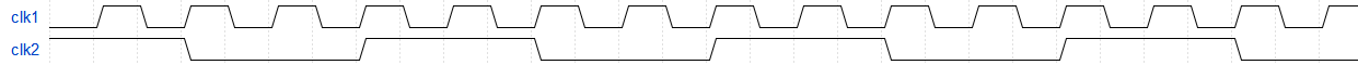 Hallo, ich bin neu auf dem Gebiet STM32. Ich habe viel hier im Forum gelesen und gelernt, doch jetzt habe ich eine Frage zu den Timern. Ich würde gerne zwei Signale erzeugen, welche synchron zueinander sind. Zum einen wäre das ein 10MHz Rechteck, welches ein Impuls-Pausenverhältnis von 50:50 hat. Und als zweites möchte ich ein Rechteck mit 900Hz erzeugen, welches auch ein Impuls-Pausenverhältnis von 50:50 hat. Der Flankenwechsel des langsameren Signals soll nur bei einr steigenden Flanke des schnelleren Signals stattfinden. Als internen Takt verwende ich 168MHz. Ich möchte das ganze über Timer realisieren und den langsameren Takt nach 3 Perioden abschalten und manuell für drei weitere Perioden einschalten. Wie muss ich die Pins konfigurieren? Welche Timer kann ich dazu verwenden? Wie muss ich die Timer konfigurieren? Exemplarisch habe ich mal ein Bild angehängt auf welchem die Frequenzen allerdings nicht wie hier im Text beschrieben zusammenpassen. Bevor die Frage kommt, was ich denn genau vorhabe: Ich möchte es mir auf dem Oszi oder LogicAnalyzer angucken und dabei etwas über den effizienten Einsatz von Timern lernen!