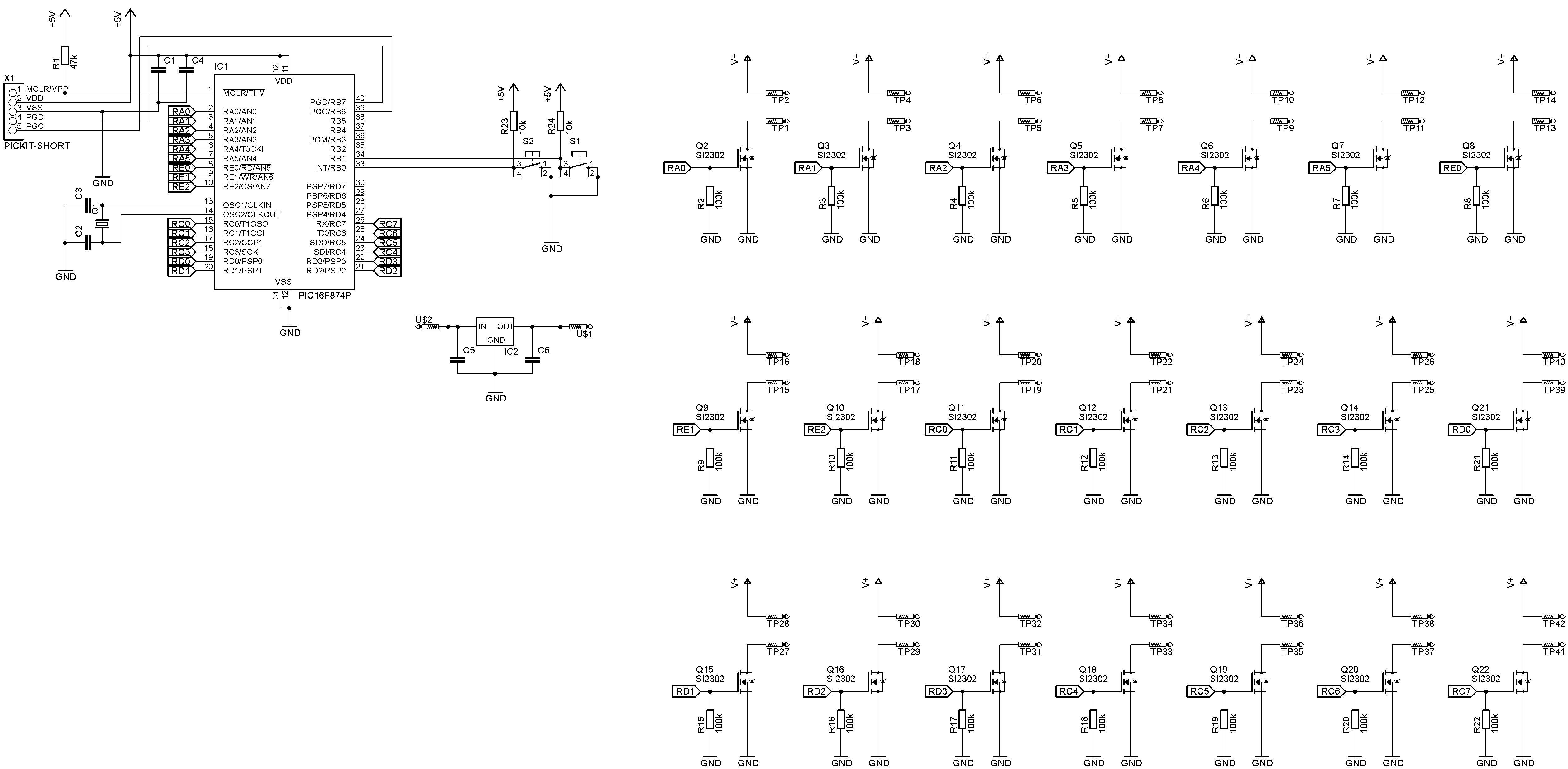 Auf alle fälle nicht so wie Euer Schaltplan! Is ja grausig das Suchspiel. Was habt Ihr Euch bis jetzt überlegt, wie das so zu steuern ist und wie man das auf den (mir leider) unbekannten PIC, umsetzen konnte?