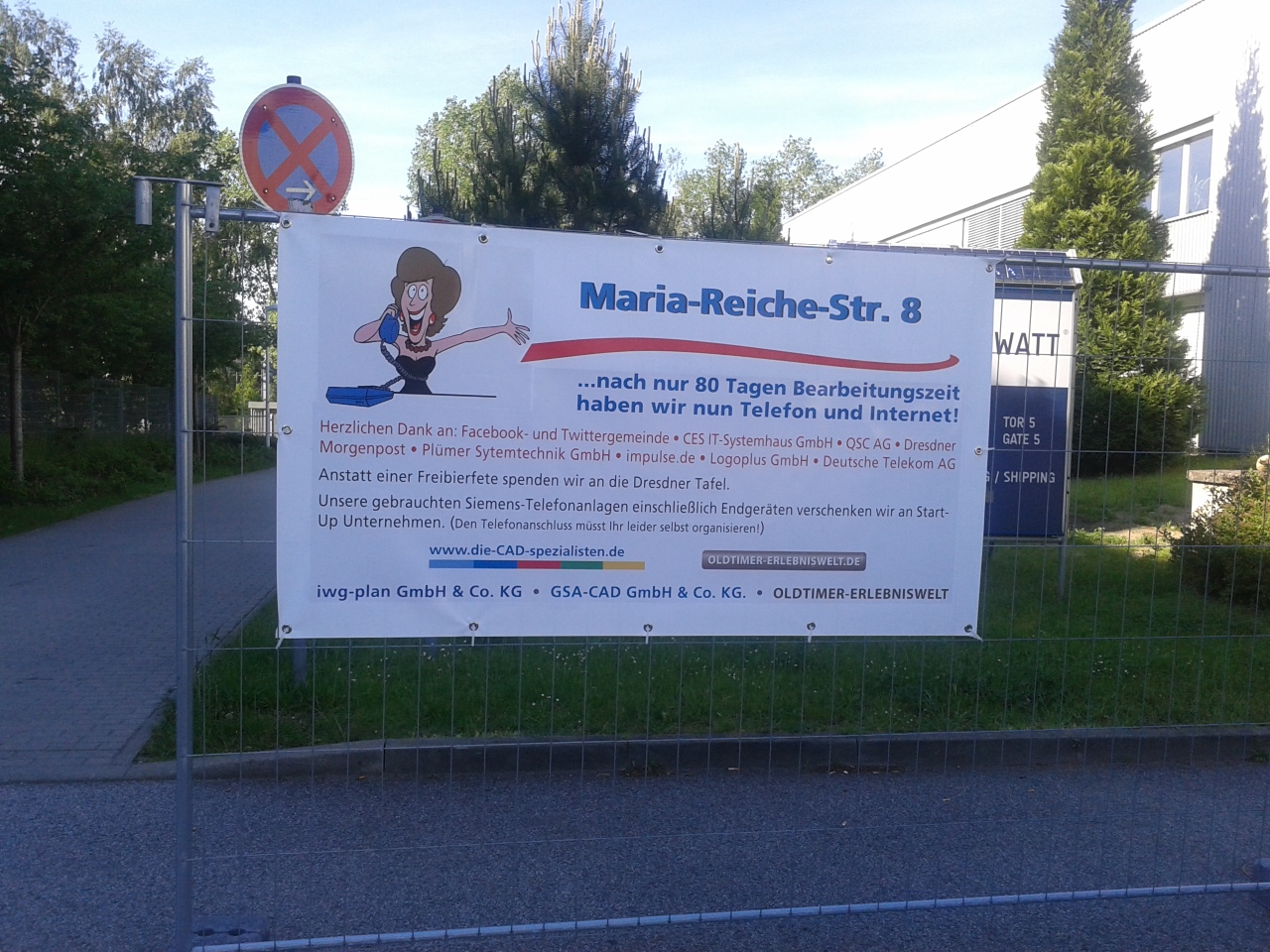 Die Firmen sollten der T-Com für die Verzögerung danken, denn kostengünstiger kann eine virale Marketingkampagne gar nicht sein. Eine Menge Leute wissen jetzt, wer auf der Maria-Reiche-Straße 8 ansässig ist.