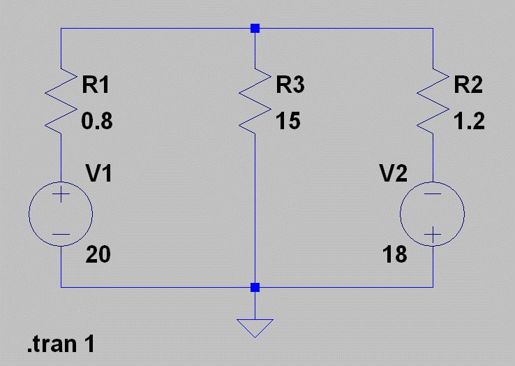 Hi, ich bräuchte einen Lösungsansatz. Ich komme rechnerisch nicht auf die richtige Lösung. Im Anhang die Schaltung in LTSpice. Ich habe bisher versucht Die Ströme zu berechnen mit Strompfeilen und dann auch noch mit Spannungspfeilen an den Widerständen, mein Ergebnis stimmt aber nicht mit den Werten aus dem Simulator überein. Der liefert mit I1= -19,186A I2= 310,078mA I3= 18,876A An dem Stromknoten oben muss ja die Summe der Ströme 0 sein. Über welchen Ansatz muss ich anfangen?