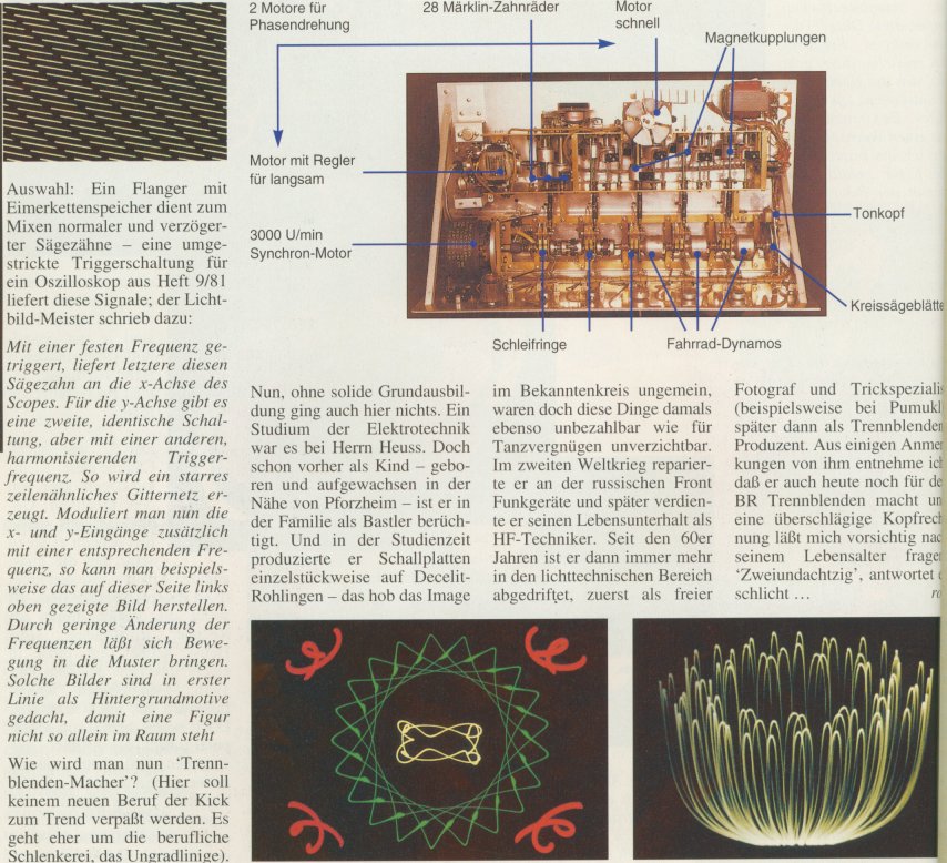 Sarah S. schrieb: > Deswegen habe ich mir nun überlegt, stattdessen den > Leuchtpunkt wandern zu lassen und in einer Fotografie zu bannen Du bist 50 Jahre zu spät. Natürlich kann man auf einem Oszilloskopbildschirm einen Leuchtpunkt langsam oder schnell wandern lassen. Allerdings sind alte Röhren nicht besonders geometrisch linear, da kann es sinnvoller sein, das auf einem PC-Bildschirm zu simulieren, höher auflösen tut er sowieso.