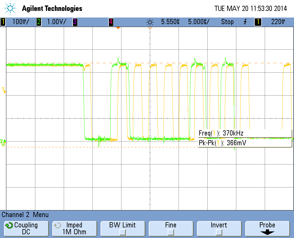Vielen Dank, du hast Recht. Habe das soeben mit meinem Oszilloskop überprüft. Alleine einen High/Low Pegel abzufragen und diesen anschließend in einem Buffer zu speichern, dauert auf meinem Controller in C fast 10us.