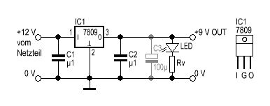 Bei 1 A hat der 7809 (der von Fairchild) eine Droput-Voltage von typ. 2 V. Wenn deine 12 V stabilisiert sind und unter Last nicht sinken, passt es.