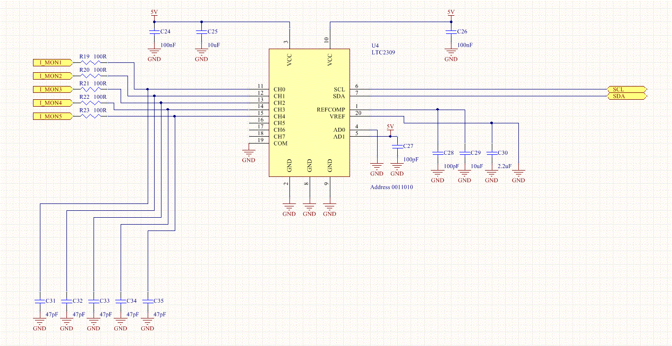 Hallo an alle Forumsmitglieder, ich habe eine Frage zur Beschaltung von dem ADC LTC2309 von Linear Technology und im speziellen zu den Pins Vref und Refcomp. Ich habe als Eingang 5 Werte die einen Strom aus reporten. Benötige ich Vref und Refcomp damit diese analogen Werte richtig konvertiert und verarbeitet werden? Wenn ja wie wäre das richtige Setup und wenn nein, ist die Beschaltung laut Datenblatt(http://cds.linear.com/docs/en/datasheet/2309fd.pdf) richtig das man Vref auf GND legt und damit auch Refcomp inaktiv schaltet. Würde mich über Ratschläge sehr freuen. Danke Max