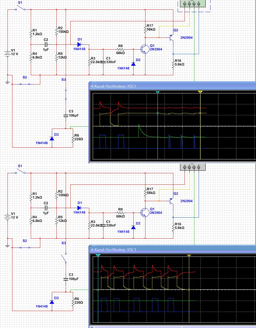 Naja, Um welche Spannungen geht's da? AC,DC, hoch, nieder???? Was willst damit machen? Einen Motor ansteuern durch dein "Reset"?? :-)) Anhand der Bilder hast einige Tips. Hier liefert bereits das !Einschalten den Impuls. Für Ausschalten drehe die Diode um. Wobei du auch die Transis beachten musst, ob es dann passt; gegebenfalls ändern. Grüße Gerald ---