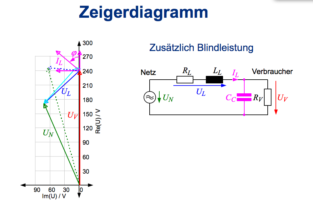 Hi, ich habe ein paar Fragen zum Zählpfeilsystem bei Wirk + Blindleistungsbezug: (siehe Anhang) Es handelt sich um ein Verbraucherzählpfeilsystem. -> Somit wird u2 auf die reelle Achse gelegt? Spannungsabfall am Widerstand + an der Spule summieren sich mit der Spannung u2 zur Spannung u1 auf. Jetzt kommt der Kondensator ins Spiel. Der Kondensator simuliert den Blindleistungsbezug? Die Blindleistung belastet ebenfalls den Widerstand und die Spule(eben die ganze Leitung) Aus diesem Grund muss im Zeigerdiagramm folgendes beachtet werden: Blindleistungsbezug -> positives VZ jwl*Q -> positiv ->warum? R* Q -> neagtiv -> warum? ich hoff ihr könnt mir helfen