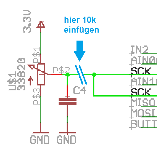 Dann rogger schrieb: > Gert schrieb: >> Könnte es an der Beschaltung von SCK liegen? > > ja! - Kommt aber wohl auf die Bauteilwerte und den Programmiertakt an. > Die Beschaltung sieht für mich, und für deinen Programmer wohl auch, wie > ein Tiefpass aus... Dann sollte ein Widerstand größer 820 ohm in Reihe vor dem Kondensator / Poti ja helfen?! http://www.atmel.no/webdoc/avrispmkii/avrispmkii.hardware_pullups.html