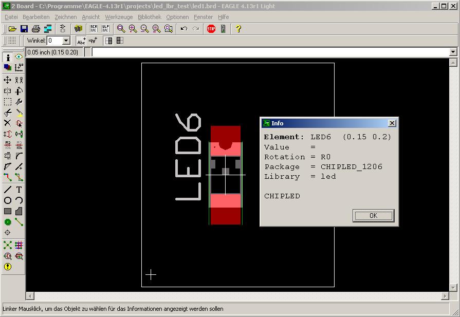 Hallo liebe Leute, ich habe in meinem letzten Design eine 1206er ChipLed verbaut. Leider war mir entgangen, dass bei der Chipled 1206 rechts und links zwei senkrechte Striche entlang laufen. Diese sind mit strichstärke Null im Layer Pads gezeichnet. Fällt beim Entwurf auch nicht auf, auch meinem LP Fertiger nicht... Jetzt sind auf der Platine auf TOP UND BOTTOM zwei dicke striche entlang der LED zu finden, die mir nu alles kurzschliessen. Sehr ärgerlich! Daher an alle: nachsehen und die led.lbr öffnen, um diese beiden Pad's zu löschen. Gruß Axel