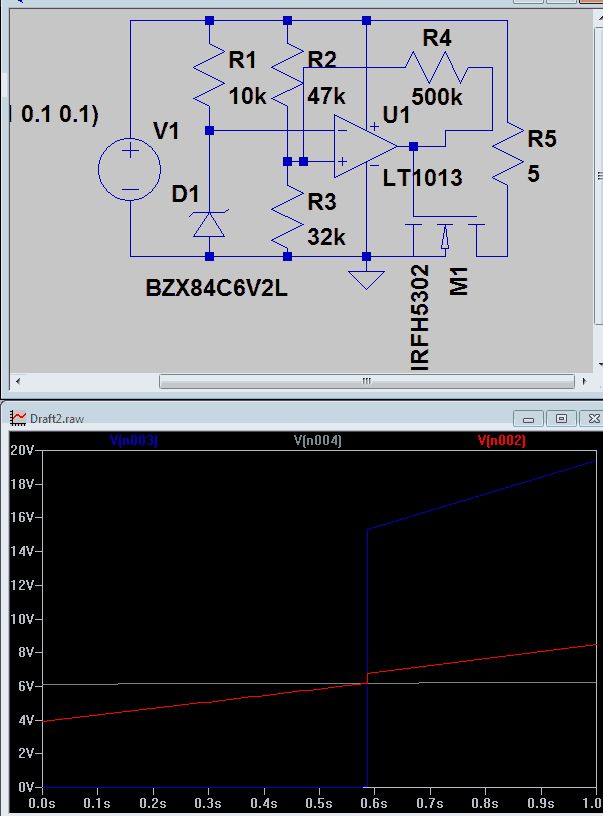 Hallo, ich entwickle gerade eine Schaltung, und habe ein Problem mit meiner Flankensteilheit. Ich brauche eine Unterspannungsabschaltung für einen Musikbox, die Schaltung habe ich bisher selbst entworfen. Normal müsste die Flanke doch viel steiler sein durch die Mitkopplung oder deute ich das ganze falsch ? Wenn ich in Multisim die Spannung von 13 nach 11 laufen lasse verändern sich die Flanken auch nicht, also das Diagram sieht dann genauso aus , was mache ich falsch ? Gruß