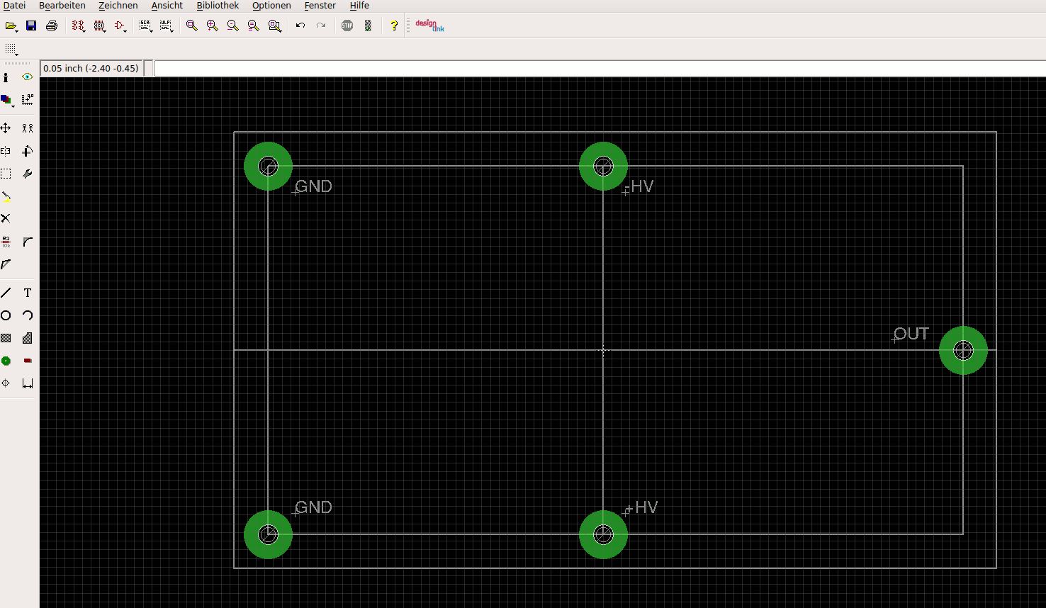 Wolfgang A. schrieb: > Ein Pad ist schon eine durchkontaktierte > Bohrung. Jein, aber für ein THT-Pad hast du recht. Pad und ev. vorhandene Bohrung sind immer eine Einheit, sonst wird das Loch im Pad eben als Fehler gemeldet. Ob das Loch dk ist, ist wieder eine andere Frage, wie das in Eagle ist weiss ich nicht, bei meinem System muss ich einfach ein Häckchen bei "dk" setzen. Aber da der TO Potentiale (GND,OUT...) angegeben hat, soll es sich wohl um dk Bohrungen handeln, zumindest sollte die Durchkontaktierung nicht stören, wenn sowieso ein Kontaktstift reinkommt. Alles andere wäre schon eine sehr seltsame Sonderlösung. Georg