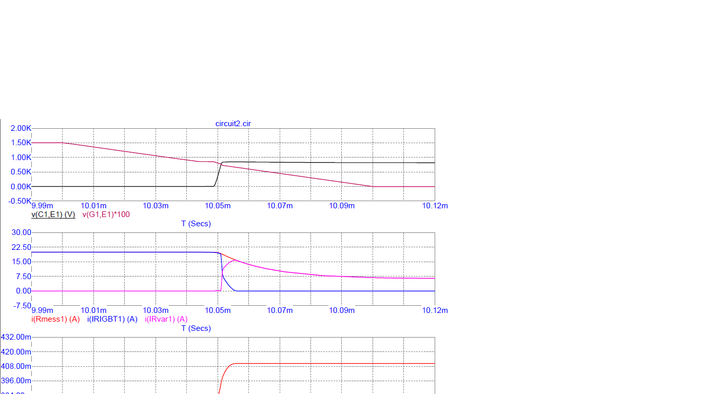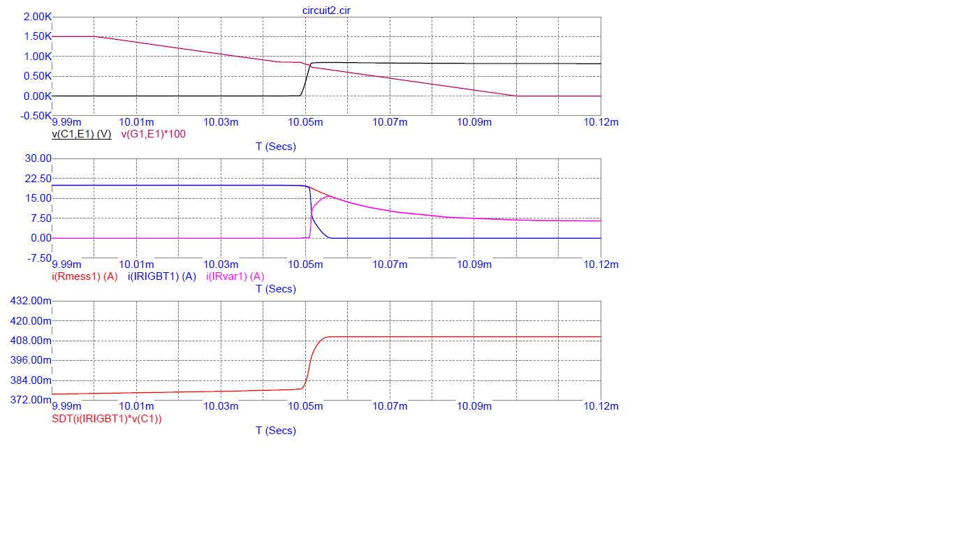 Hallo zusammen, ich muss ein Varistor aussuchen um ein IGBT beim Überspannung zu schutzen! IGBT : Vce = 1200V , Ic= 25 A. welche Varistor soll ich dann nehmen? ich habe schon paar simulation gemacht mit microcap (Bild). wenn ich richtig verstanden habe, muss Vce mit hilfe von varistor < 1200V sein!! ein andere teil Aufgabe ist die restspannung am varistor und die verlust Energie am IGBT zu bestimmen1!! ? wie soll ich das machen.. kann man das im diagramm ablesen oder muss man was rechnen? vielen Dank im Voraus