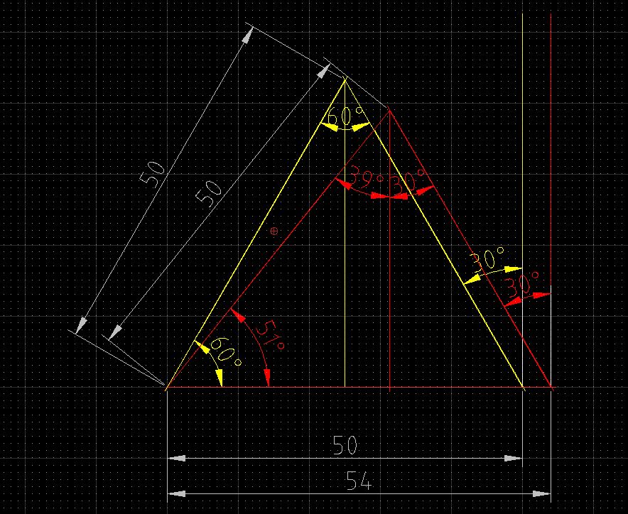 Max H. schrieb: > Nachtrag: Jetzt hab ich gesehen, dass das große Dreieck gleichseitig ist > (alle Winkle 60°) also könnte man das Ganze auch ohne sin lösen. Das Problem ist, dass das große Dreieck eben nicht symetrisch ist. (Und somit auch nicht gleichseitig oder gleichschenklig) So lautet zumindest die Aussage vom TO (erst in einem späteren Beitrag).