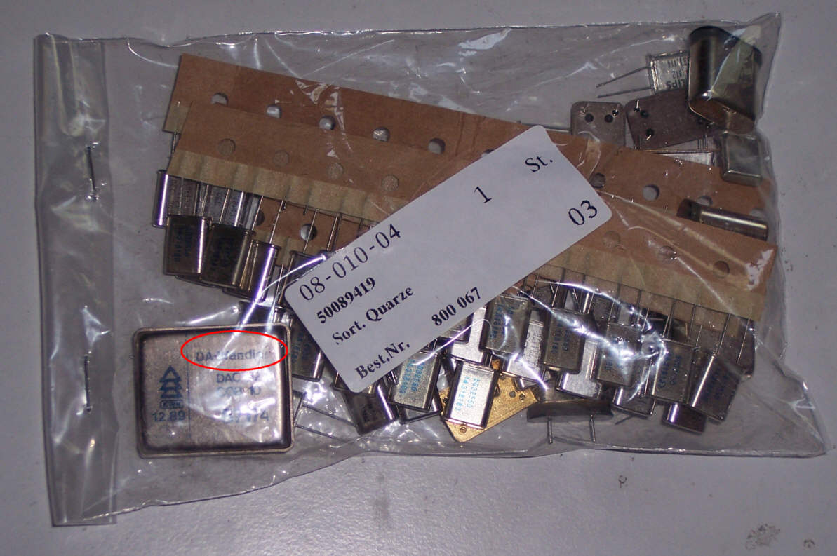 Das die Leute von Pollin ab und zu nicht so ganz wissen, was sie verkaufen ist jedem der ab und zu bei denen was bestellt klar, aber dass sie auch nicht lesen können ist selbst mir neu... Hat jemand zuällig ein Datenblatt zu dem DA Wandler ? DAC32 COB 10 Dem Baujahr (1989) nach könnte das IC aus der DDR stammen. PS: Im Quarzsortiment finden sich immer einige 18,432MHz Quarze, optimal für AVR und hohe Baudraten.