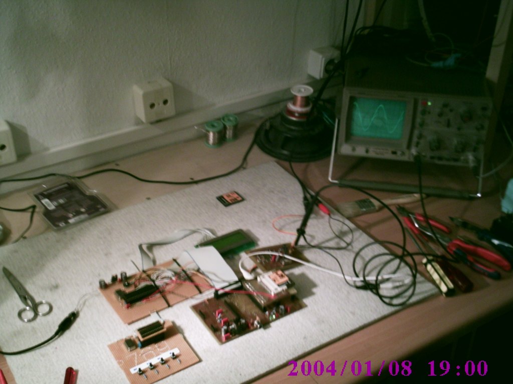 Moin Moin... Bin durch Eure Seite und meine momentane Ausbildung auf den Tick gekommen mit AVR's rumzubasteln :) Ist noch nicht viel was ich kann aber es wird mit der Zeit schon. Habe mal n paar Fotos meiner kleinen Werkstatt, die ich in meinem alten Zimmer eingerichtet habe geschossen und will sie Euch nicht vorenthalten. Übersicht: http://mitglied.lycos.de/tfritzke/avr/IMG_0004.jpg http://mitglied.lycos.de/tfritzke/avr/IMG_0005.jpg Mein AVR Board: http://mitglied.lycos.de/tfritzke/avr/IMG_0006.jpg Habe mich zur Übung mal am quasi "standart" Satz von C bedient :) Auf dem Brett sitzt ein 90S2313, das ISP Interface, ein Mega8 und ein 4Mhz Quarzoszi. Momentan spiel ich mit dem 90S2313 und dem LCD ein wenig rum. Da der 7805 mit dem LCD mächtig heiss wurde gabs erstmal nen Kükö spendiert. Details: http://mitglied.lycos.de/tfritzke/avr/IMG_0008.jpg EEPROM kann ich dank Euch jetzt auch auslesen ;) http://mitglied.lycos.de/tfritzke/avr/IMG_0007.jpg Das ist übrigens mein 1. Post hier und ich denke mal, dass ich hier regelmäßig reinschauen werde.. mfg Thorsten
