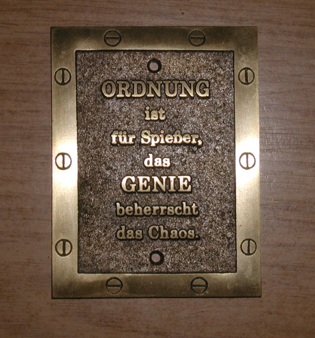 Ja das war das erste was mir mein Chef beigebracht hat in meiner Ausbildung: Ordnung halten. Irgendwie brauche ich immer eine Art Grundordnung bei mir damit ich was sinnvolles machen kann :)
