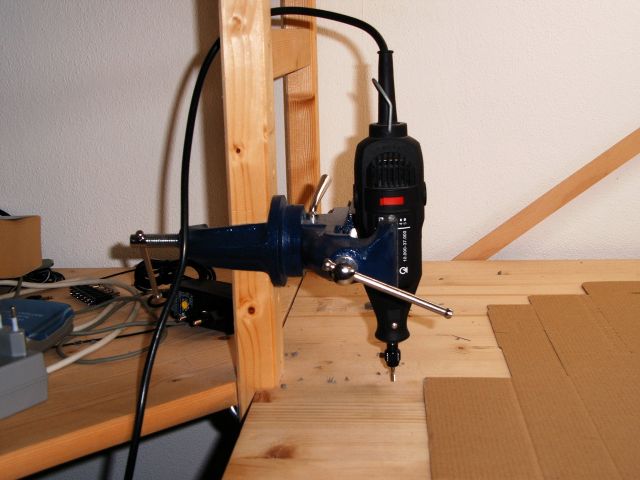 Tjo, biddescheen. ;) Sieht etwas brutal aus, aber wenn man den Schraubstock nicht grad zuknallt geht das schon. Materialführung halt nur von Hand g Wobei, ich hätte sogar den kleinen Kreutisch von Proxxon hier, aber mit dem bin ich weniger glücklich. Zu klein und schwergängig