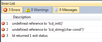 Danke für deine Antwort g457. Ich bekomme keine Warnung, und keinen Error. Nur wenn ich die #include "lcd_routine.c" aus meinem pollinlcd.ccp rausnehme, dann bekomme ich Error Meldungen. Das wären die drei im Bild. Könntest du mir helfen zu verstehen was diese bedeuten ? Danke Patrick