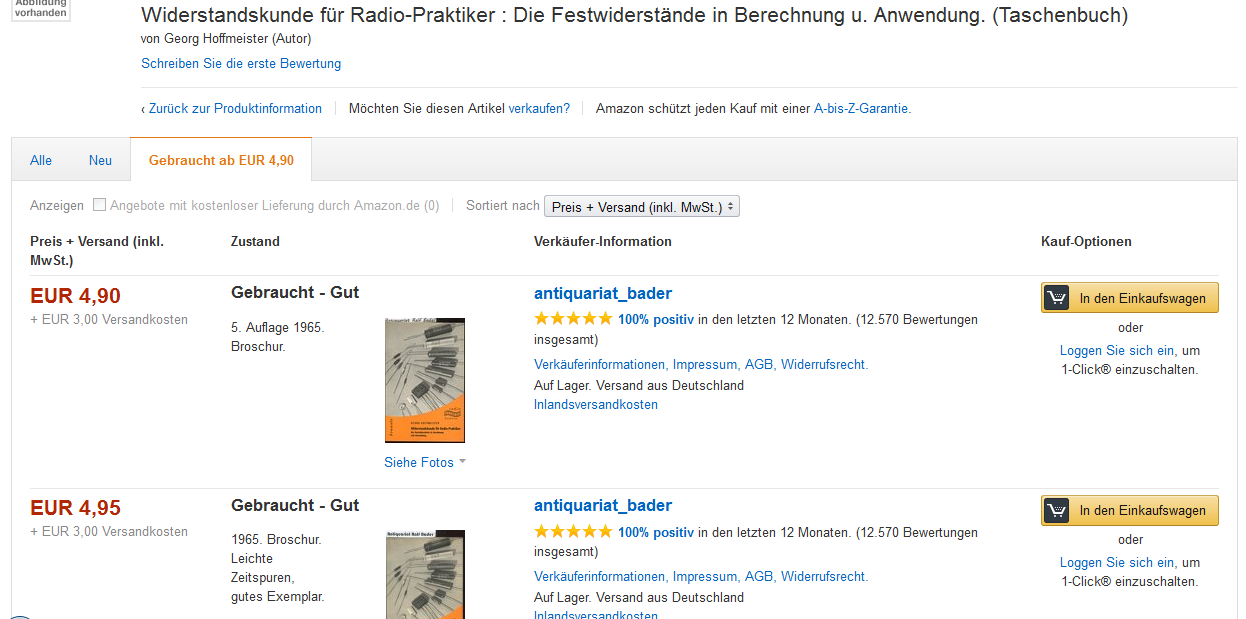 Karl-Heinz M. schrieb: > Das hört sich so an, als wenn ich bisher was falsch gemacht hab und > deshalb auch mehrfach Versandkosten zahlte? Das ist der "Amazon Marketplace". Leicht daran zu erkennen, daß dort Händler mit Namen genannt werden (Spalte "Verkäufer-Informationen"). Du kaufst diese Bücher nicht bei Amazon, Du kaufst sie über Amazon. Genauso, wie Du auch nichts bei eBay kaufst, sondern nur über eBay. Anders als eBay aber verkauft Amazon auch selber - und dann gibt es auch keine Versandkosten für Bücher. Nur ist Amazon selbst kein Antiquariat.
